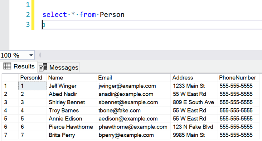 First let’s consider a normal table that we can use as our sample main table. For this post, we’ll work with a basic person record: