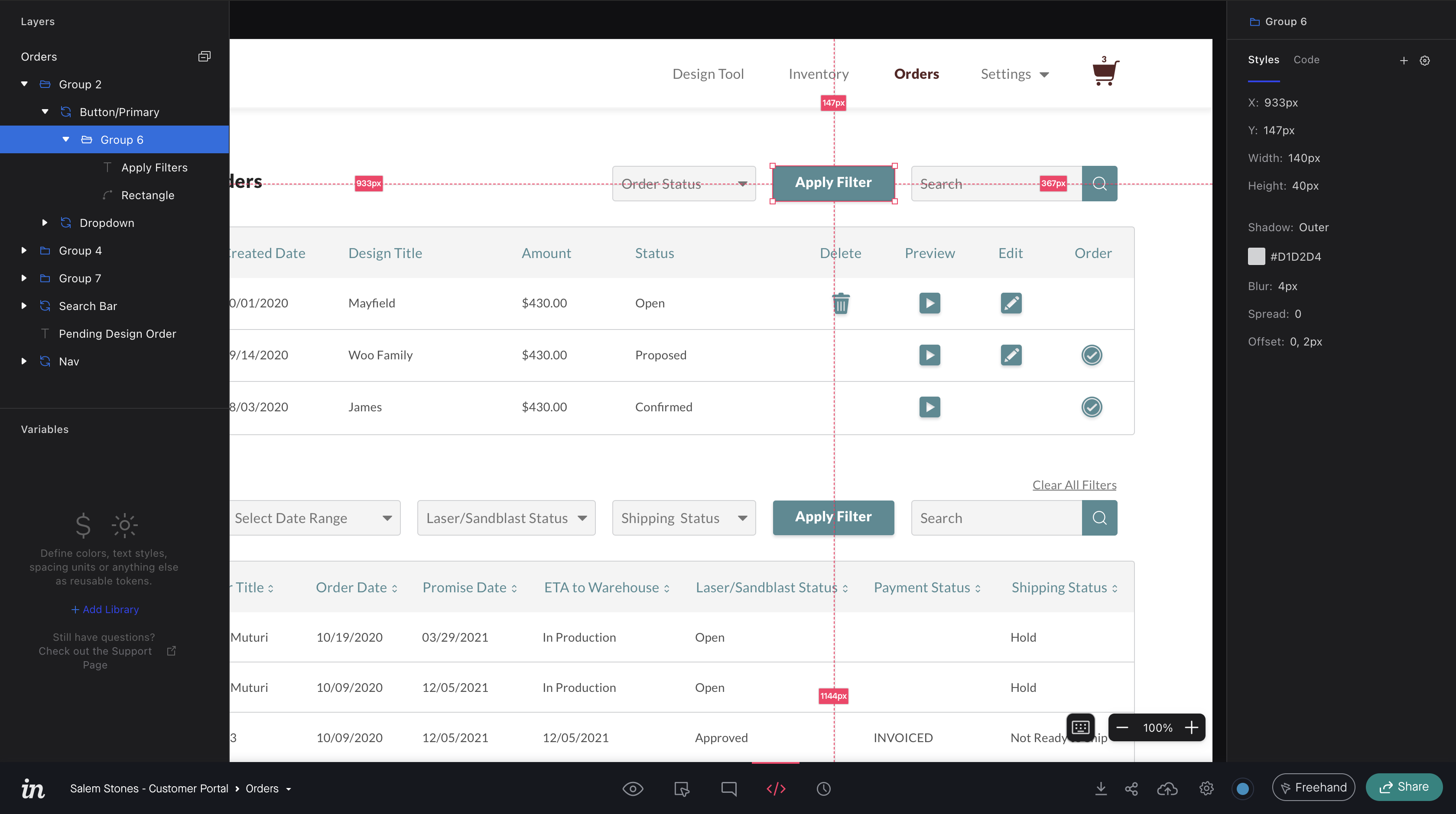 To minimize the instances of UI issues, we use a product called InVision that allows developers to “inspect” designs and get exact hex values, font styles, padding, etc as shown below.